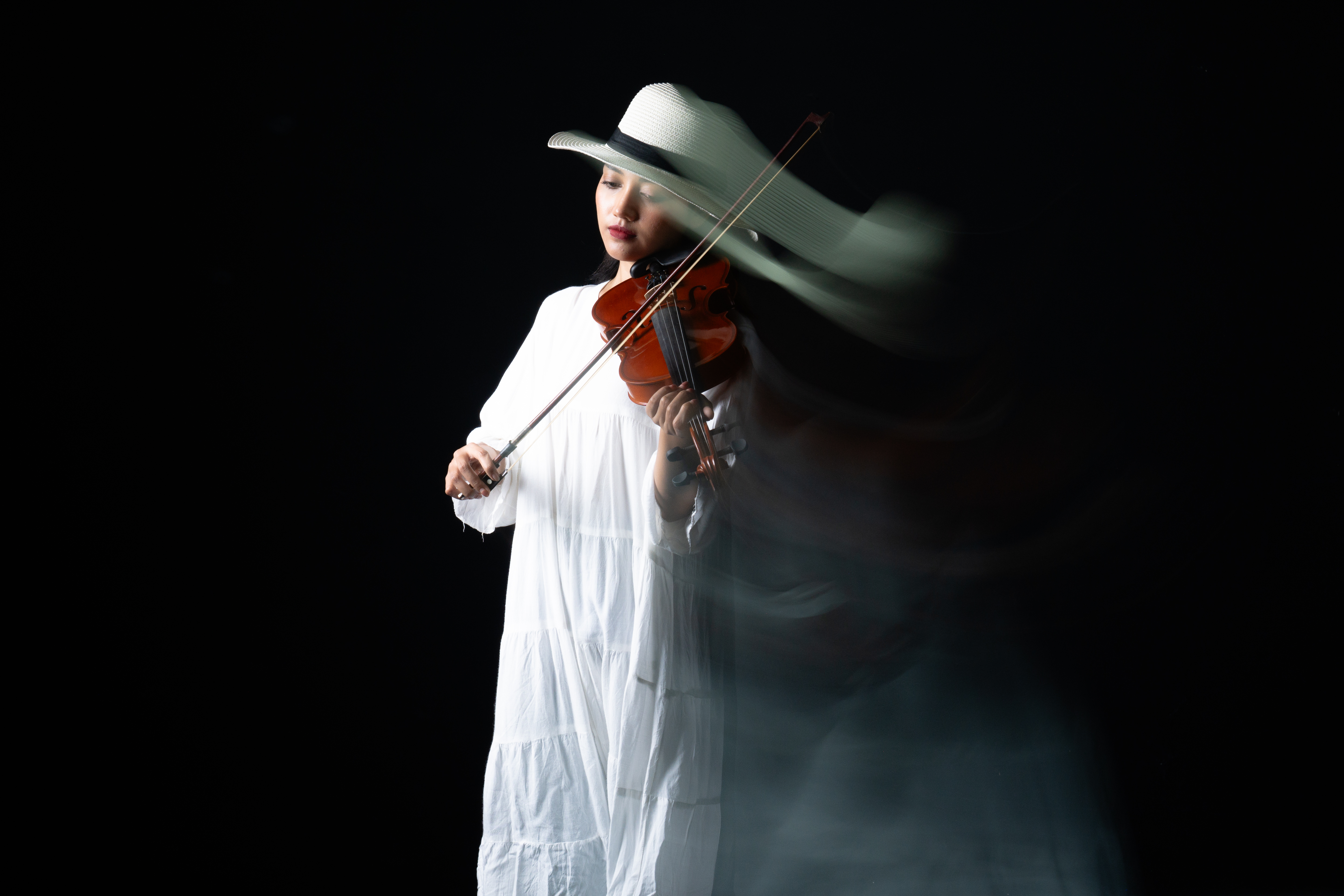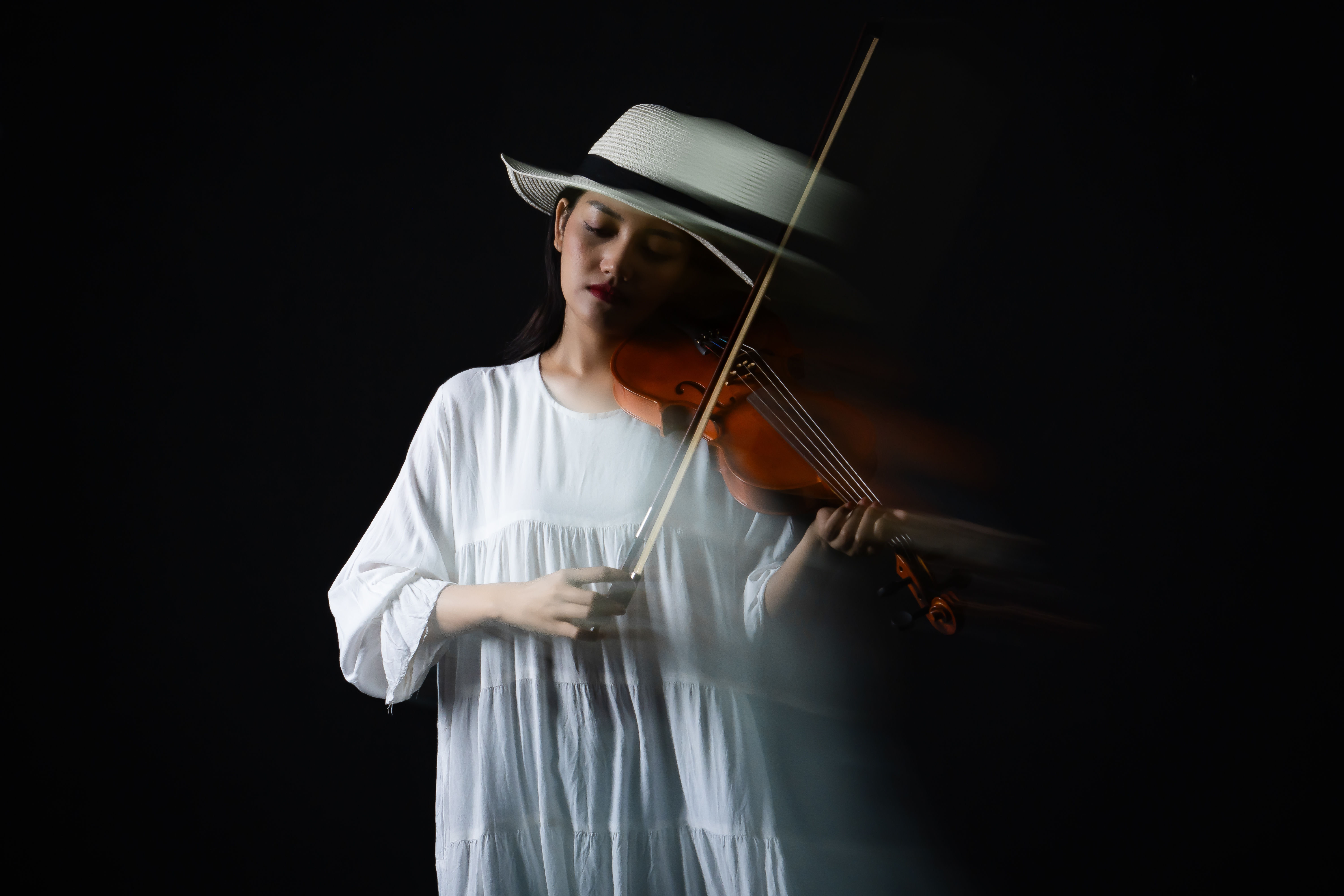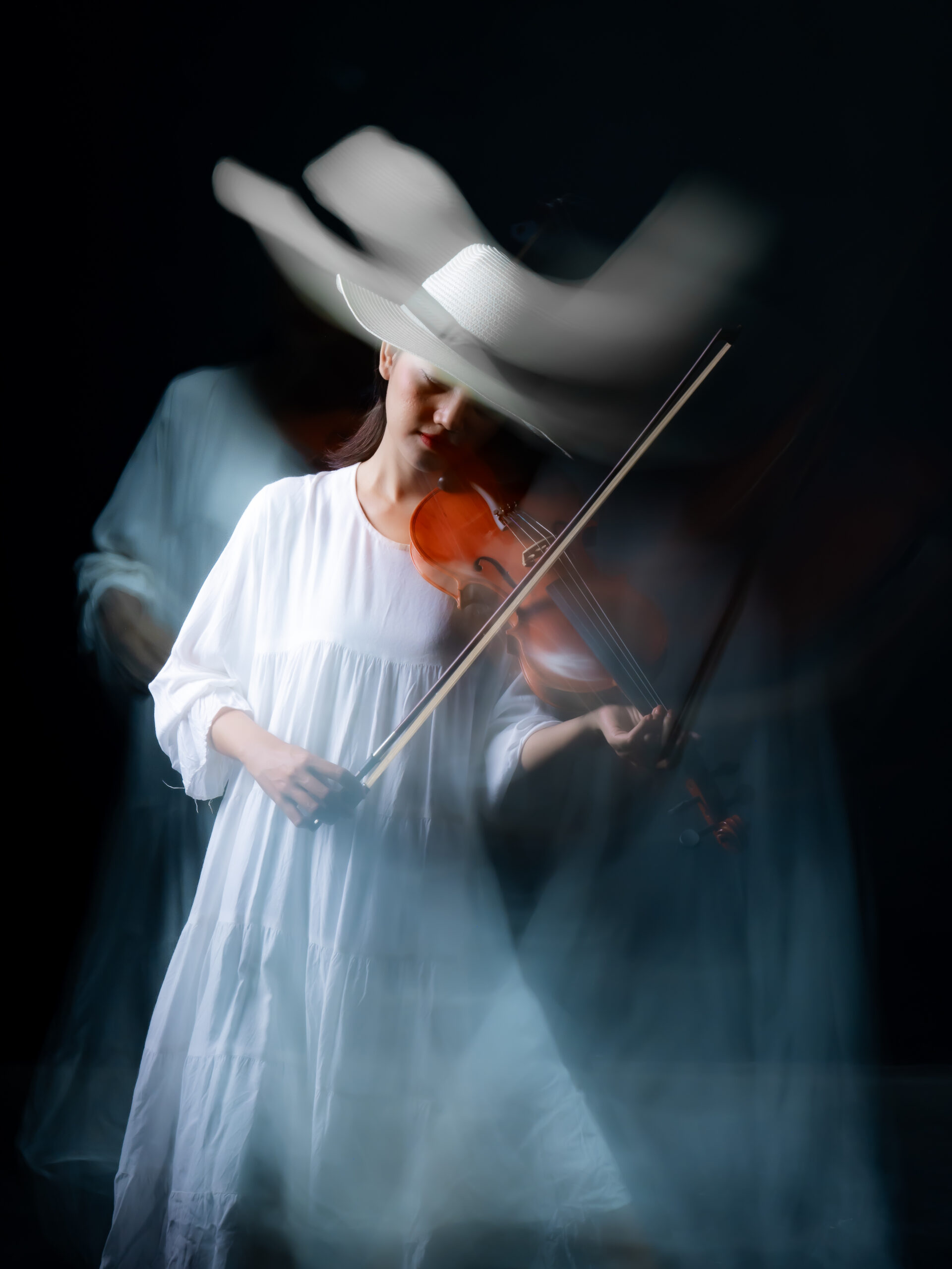 Each frame captures not the sound of the violin, but its echo suspended between moments, where rhythm becomes blur and melody turns to light.